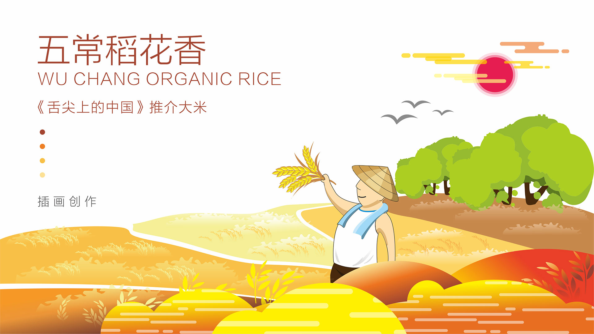 三采用符合目標人群喜歡的手繪插畫表達五常大米生長的場景,體現(xiàn)出生態(tài)、自然和豐收的喜悅。