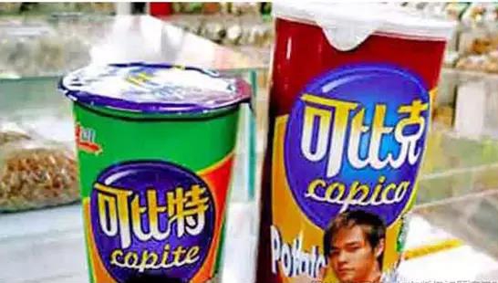 右邊是正版可比克薯片包裝,左邊是仿品可比特。