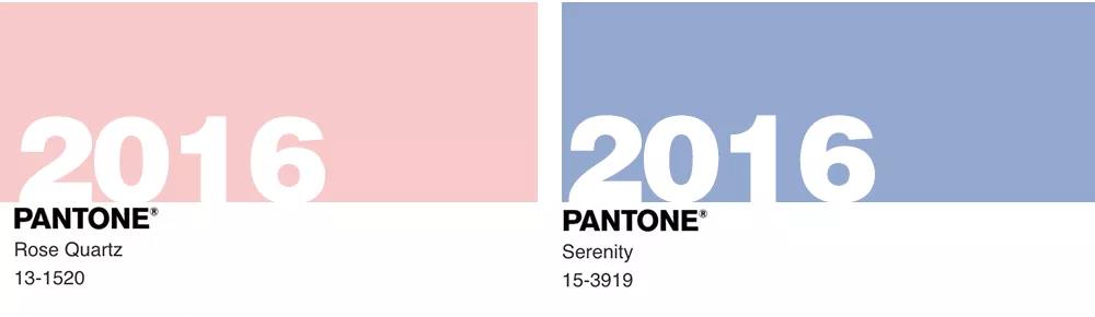 潘通2016年度代表色:13-1520 Rose Quartz (水晶粉) 與 15-3919 Serenity (寧靜藍)