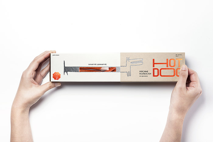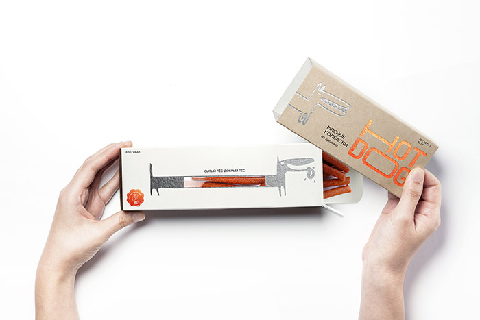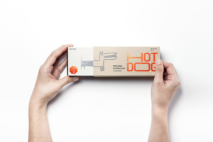 這是David Hovhannisyan設計的寵物狗香腸包裝,品牌文字形象生動,很好的體現了香腸被拉出來的不斷變長的感受,同時兼具識別性,充滿趣味性。